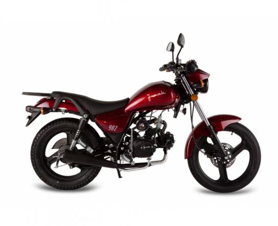 To sprawdzona i wyjątkowo udana konstrukcja Junaka 121 125 dostosowana do wymogów stawianych motorowerom. Funkcjonalna karoseria została odchudzona i dostosowana do parametrów nowego napędu. Bardziej istotne zmiany dotyczą głównie elementów nośnych ramy. Motorower postawiono na charakterystycznych, szerokich oponach doskonale sprawdzających się warunkach terenowych - jest to jedyny motocykl w tym przedziale pojemności dysponujący takim rozmiarem ogumienia ! Junak 902 to klasyczny motorower uniwersalnego przeznaczenia. Idealna maszyna na codzienne dojazdy do szkoły, wypad na ryby, czy weekendową włóczęgę po bezdrożach. Bardzo dobre zawieszenie przy uwzględnieniu niewielkiej masy motocykla pozwala rokować, że model 902 na szansę stać się przebojem w swojej klasie. Silnik - przeegzaminowany ze świetnym wynikiem ? w modelu 902 to czterosuwowy jednocylindrowiec chłodzony powietrzem. Niewielki motor generuje moc rzędu 3,5KM co w pełni zaspokaja oczekiwania stawiane jednostkom tego typu. Układy hamulcowe typowe dla małych motocykli. Z przodu zastosowano układ hydrauliczny, tarczowy, tylne koło obsługuje tradycyjny układ bębnowy. Model 902 to prosty w budowie i obsłudze, pełnowymiarowy motocykl umożliwiający poruszanie się po drogach publicznych bez obowiązku posiadania prawa jazdy.
