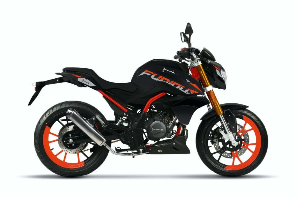 Junak Furious 50 to także wiele sportowych akcentów, w tym agresywna geometria i masywne kształty. W standardzie jednoślad został też zaopatrzony w lampy full led, zarówno z przodu, jak i z tyłu, dwa hamulce tarczowe, sportowe zawieszenie typu upside-down oraz elektroniczny kokpit.